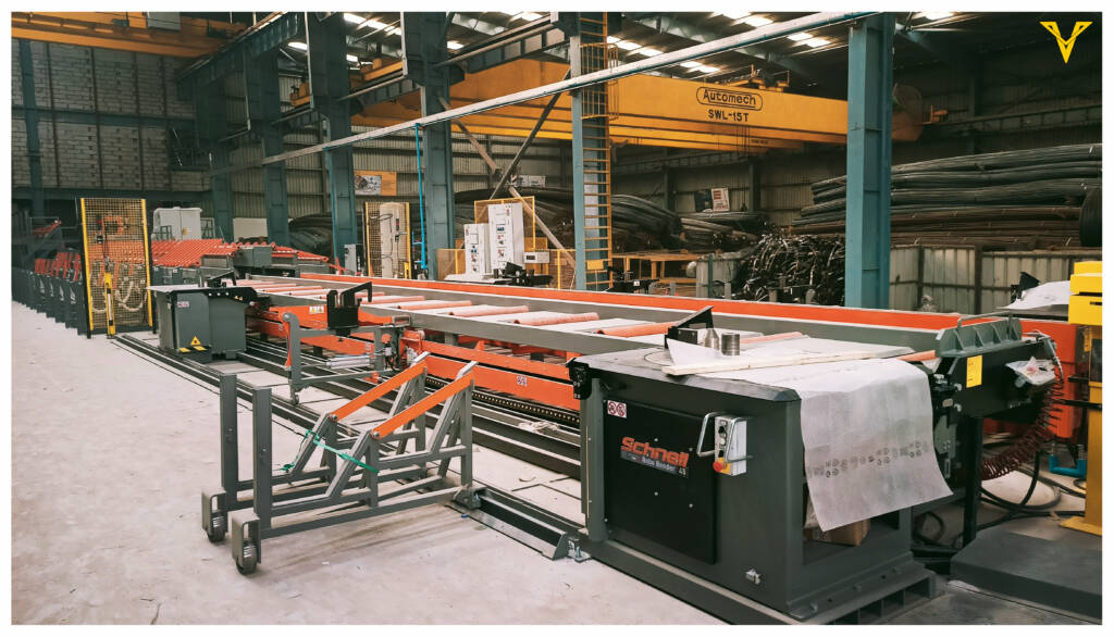 At Vikrant Group, our state-of-the-art Cut & Bend facility ensures accuracy, efficiency, and uniformity in every steel bar processed. Using fully automated Schnell Robo Bender machines, we transform raw reinforcement steel into precisely cut and bent shapes that match your project specifications – reducing onsite labor, time, and waste.